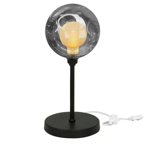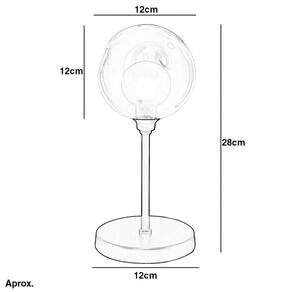 Com aproximadamente 12 cm de base, 12 cm de largura x 12 de altura da bola, totalizando aproximadamente 28 cm de altura total da luminária