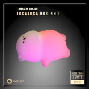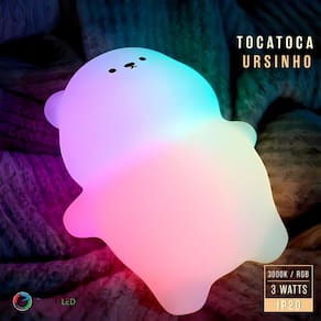 A TocaToca Ursinho é uma luminária divertida e encantadora, ideal para transformar o ambiente com delicadeza e personalidade. Compacta, leve e fácil de usar, ela mistura luz quente (3000K) e efeitos RGB coloridos para criar um clima relaxante, lúdico ou decorativo.