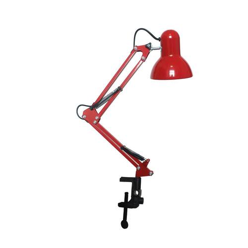 Luminária de Mesa Articulável com Garra Estudo Escritório Cor: Vermelho Luminária de Mesa Articulada com Garra Preta G20 Tensão Elétrica : Bivolt Acompanha Lâmpadas: Não Altura: 60cm Aviso: Desligue a energia ao remover ou trocar a lâmpada. Composição do Material: Cúpula em chapa de aço, haste em tubo de aço com acabamento em pintura epóxi. Comprimento: 15cm Comprimento do Cabo: 91cm Conservação e Manutenção do Produto: Limpar com pano seco. Não utilizar produtos abrasivos. Conteúdo da Embalagem: 1 Luminária e 1 cabo. Largura: 30cm Material: Metal Peso do Produto: 600g Potência Máxima da Lâmpada: 60W Produto: Luminária de Mesa Quantidade de Lâmpadas: 1 Lâmpada Tipo de Soquete: E27 Tipo: Garra Ambientes Recomendados: Quarto e escritório Marca: Não Informado