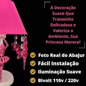 Lindo Abajur Infantil de Borboletas e Bailarinas Rosa Pink