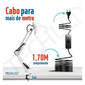 Techled É uma luminária de mesa que atende com maestria todo tipo de uso, desde pessoal até profissional. Possui articulações firmes de metal que permitem chegar na posição ideal para o momento. Seu design clean e elegante faz com que ela se destaque em qualquer ambiente, desde residências, até locais de trabalho. Para completar sua versatilidade acompanha uma base e uma garra para ser disposta em qualquer espaço. corpo flexível e estável: Suas articulações reforçadas de metal fazem com que ela não só chegue na posição ideal, mas que também fique fixa para sua utilização. Para algumas posições é recomendado o uso da garra. cúpula rotatória: A cúpula gira facilmente para cima, para baixo e para os lados, dando o controle preciso de onde quer que a luz aponte. base pesada e compacta: Base ponderada que sustenta o produto. Projetada para proporcionar uma bancada ou mesa mais organizada e limpa, ocupando um pequeno espaço. garra multifuncional: Sustentação para qualquer posição que a luminária possa chegar. A garra é do tipo parafuso, que não deixa marcas de mordida na mesa. Possui 3 opções de encaixe para se adequar ao seu uso. material metálico qualificado: Material metálico qualificado em toda luminária, trazendo uma longa durabilidade para o produto. on / off: Muito fácil de controlar, basta pressionar o botão liga/desliga no cabo de alimentação. Especificações técnicas: Frequência: 50/60hz Voltagem: 110/220v - bivolt Soquete: e27 Suporte: base e garra Peso aproximado: 1,4kg Cabo: 1,70m Componentes: base e garra multifuncional Nós da techled nos importamos com cada detalhe. Confira nossa linha de produtos com qualidade premium e preços acessíveis. Você merece um techled Marca: Não Informado Ean: 79010403572080