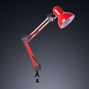 Luminária de mesa articulada com presilha para fixação em superfícies planas como mesas e bancadas. Estrutura com acabamento metálico e braço articulável que permite direcionar o foco da luz de forma prática e eficiente.