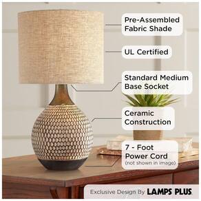 Usa uma lâmpada de base média padrão máxima de 150 watts não incluída. Soquete do interruptor liga desliga. Candeeiro de mesa de estilo moderno Mid Century da 360 Lighting. Base com acabamento em castanho madeira com padrão texturado. Construção cerâmica. Tonalidade de tambor de cor de aveia Marca: Não Informado