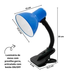 Luminária articulada de mesa com presilha para leitura, não necessita montagem, excelente para mesas de escritório, quartos, estantes, além de ser um ótimo presente.