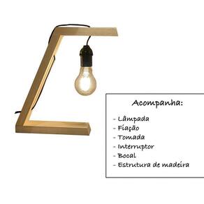 - Itens Inclusos: Lâmpada, fiação, tomada, interruptor, bocal, estrutura de madeira