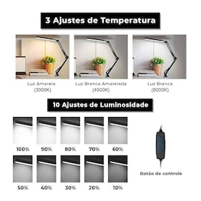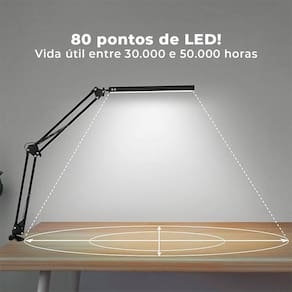 ao usar a luminária articulável, o ambiente se torna mais moderno e harmônico, devido ao seu design fino, leve e versátil. Possui sistema com 3 temperaturas de cor diferentes, além de ser possível regular a intensidade da luz em até 5 níveis. A tecnologia de luz natural de led reduz a fadiga dos olhos, gerando um conforto muito maior e impactando menos a vista de quem está usando-a. Características da luminária articulada de mesa