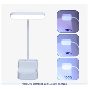 Luminária de Mesa LED Recarregável com Suporte para Celular - 3 Níveis de Luz, Porta Canetas