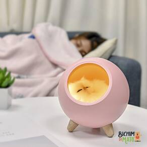 E para o toque final, a luminária acompanha um gatinho de pelúcia, que a deixa mais fofa e charmosa.