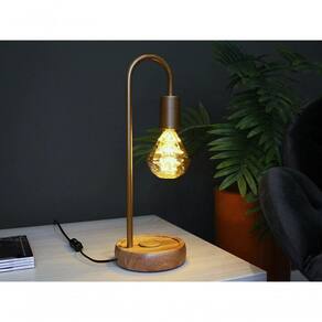 Luminária de Mesa Taschibra Flam Metal/Madeira E27 Bivolt Ouro