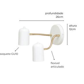 Fabricante: Lumim, BrasilDesigner: Lumim A Luminária de Parede Dumas é uma escolha perfeita para quem busca uma iluminação versátil e funcional, combinando estilo moderno e praticidade. Com duas hastes flexíveis e cúpulas ajustáveis, a Dumas permite criar uma iluminação personalizada e direcionada para cada necessidade, tornando-a ideal para ambientes que exigem versatilidade e um toque de sofisticação. Esta luminária é a solução ideal para iluminar áreas específicas, destacar elementos decorativos ou proporcionar luz direta em pontos estratégicos. Fabricada em alumínio e ferro, com acabamento em pintura eletrostática de alta qualidade, a Luminária Dumas é durável e resistente, inclusive à maresia (exceto os flexíveis), garantindo uma longa vida útil mesmo em ambientes internos com alta umidade. Suas cúpulas com articulação de 180º proporcionam controle total sobre a iluminação, permitindo direcionar a luz conforme a necessidade. Compatível com lâmpadas LED de soquete G10 (não inclusas) e com tensão bivolt. O cabo de 20 cm para instalação simples e prática. Indicada para áreas internas como salas de estar, quartos, escritórios e corredores, é uma peça versátil que se adapta a diferentes estilos de decoração, do contemporâneo ao industrial. Recomendações de Uso e Manutenção: Indicada para ambientes internos, a Luminária de Parede Dumas é ideal para projetos que exigem dinamismo e elegância.