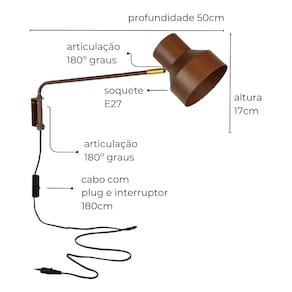 Fabricante: Lumim, BrasilDesigner: Lumim A Luminária de Parede Hellen é uma peça de iluminação que combina funcionalidade e design contemporâneo, ideal para quem busca modernidade e sofisticação. Com uma cúpula de design moderno, que confere um toque de elegância ao ambiente, a Hellen é perfeita para iluminar e decorar interiores, proporcionando um estilo único e refinado em qualquer projeto. Fabricada em alumínio e ferro, com pintura eletrostática de alta qualidade, a Luminária Hellen é resistente e durável, incluindo proteção contra maresia, o que a torna uma escolha confiável para interiores que precisam de uma luminária robusta e estilosa. A cúpula possui articulação de 180º, permitindo que a luz seja direcionada conforme a necessidade, proporcionando uma iluminação versátil que se adapta a diferentes ambientes e ocasiões. Compatível com lâmpadas LED de soquete E27 (não inclusas) e com tensão bivolt, a Hellen é uma solução prática e econômica, ideal para diversos espaços internos. O cabo de 180 cm com plugue e interruptor permite uma instalação fácil e prática. A Luminária Hellen é indicada para áreas internas como salas de estar, quartos, escritórios e corredores, sendo uma escolha que alia beleza, funcionalidade e um design moderno. Recomendações de Uso e Manutenção: Para manter a Luminária de Parede Hellen sempre em ótimo estado, recomenda-se a limpeza com um pano seco e macio, evitando o uso de produtos abrasivos e solventes que possam danificar o acabamento.