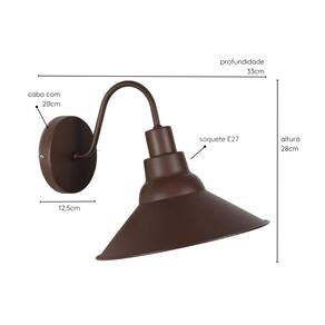Fabricante: Lumim, BrasilDesigner: Lumim A Luminária de Parede Judith é a combinação perfeita de design clássico e funcionalidade, ideal para quem deseja trazer um toque de nostalgia e conforto aos ambientes internos. Com uma cúpula fixa em estilo antigo, esta luminária proporciona uma atmosfera acolhedora e charmosa, tornando-se um elemento decorativo que valoriza espaços como salas de estar, quartos, corredores e escritórios. Seu design é ideal para complementar decorações que buscam uma estética vintage ou rústica, proporcionando uma iluminação suave e envolvente. Fabricada em alumínio e ferro, com pintura eletrostática de alta qualidade, a Luminária Judith é resistente e durável, incluindo proteção contra maresia, o que a torna uma escolha confiável para ambientes internos que requerem robustez e estilo. A cúpula fixa permite uma iluminação direta e aconchegante, ideal para criar ambientes convidativos e confortáveis. Compatível com lâmpadas LED de soquete E27 (não inclusas) e com tensão bivolt, a Judith oferece uma solução prática e eficiente de iluminação para diferentes espaços. O cabo é de 20 cm para instalação. A Luminária de Parede Judith é uma peça versátil que se adapta a diferentes estilos de decoração, trazendo um toque atemporal que encanta em qualquer ambiente. Recomendações de Uso e Manutenção: Para manter a Luminária de Parede Judith sempre em ótimo estado, recomenda-se a limpeza com um pano seco e macio, evitando o uso de produtos abrasivos e solventes que possam comprometer o acabamento.