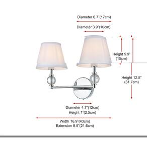 - Dimensão do produto 17 x 8,5 x 12,5 polegadas; o material do produto consiste em tons de metal, cristal e tecido; a iluminação é regulável; acabamento do hardware em latão; ideal para iluminação do banheiro, corredor e entrada; acabamento em latão e tecido branco;