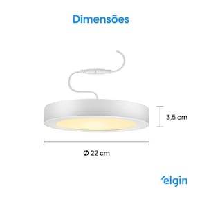A Luminária Inteligente de Sobrepor LED Elgin é mais um dispositivo que deixará sua casa conectada. Controle sua Luminária pelo celular, através do aplicativo Elgin Smart de forma simples e rápida, use também o comando de voz para controlar a iluminação usando o Amazon Alexa ou Google Assistant. A Luminária LED tem potência de 18W, vida útil de longa duração e baixo consumo energético. Com ela, você pode ajustar a intensidade da iluminação para cada momento, reduza a luz para assistir um filme na sala ou potencialize para a hora da leitura à noite.