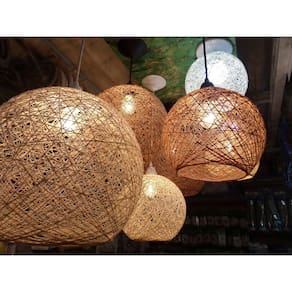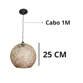 Especificações técnicas e características: Marca: fabriluz Luminária artesanal rústica de sisal ou juta ou algodão em formato de globo/bola, lavável. Tamanho: 18 cm diâmetro Voltagem: 110/220 bivolt Comprimento do cabo: 1 metro Tipo de soquete: e27 Cor: bege
