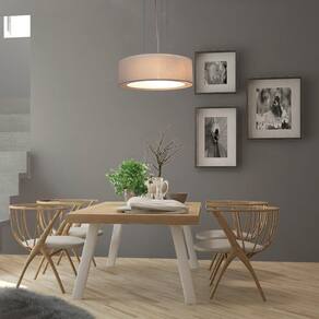 Luminária de Teto Pendente Cúpula Dupla Linho Pérola 50x16 Lustre Pendente em tecido 50cm: