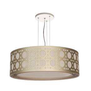 Luminária de Teto Pendente Palha Cúpula Dupla Bronze 50x16 Lustre Pendente em tecido 50cm: