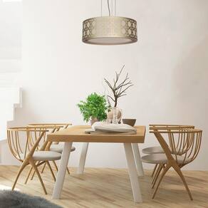Cúpula acabamento em tecido: Linho e Algodão; -linho Pérola; -algodão Cru; Detalhe Recorte em Pet cor:Bronze.