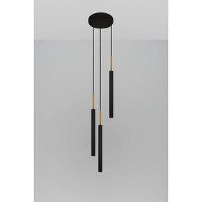 Luminária De Teto Pendente Tubo Triplo Cozinha Preto Dourado