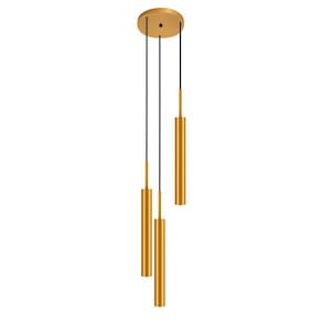 Luminária De Teto Pendente Tubo Triplo Sala Lavabo Dourado