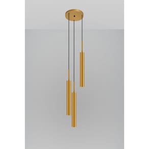 Luminária De Teto Pendente Tubo Triplo Sala Lavabo Dourado