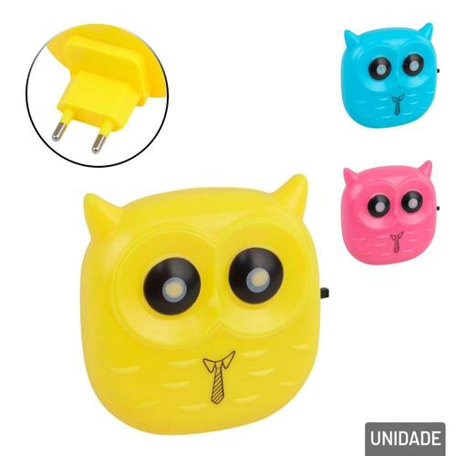 Luminária de Tomada Bivolt Coruja de Gravata A Luminária de Tomada Bivolt Coruja com Gravata Color é a solução ideal para quem busca praticidade, inovação e estilo em um único produto. Com design moderno e funcional, ela traz o formato lúdico de Coruja com um detalhe de gravata e a beleza das cores vibrantes, proporcionando uma iluminação personalizada que se adapta às suas necessidades e ao seu ambiente.\nEsse abajur de tomada é perfeito para decorar e iluminar o quarto, corredores ou demais ambientes com pouca iluminação. Prático para levar em viagens, não ocupa muito espaço na mala. Ideal para o quartos, salas e lugares com pouca iluminação, proporcionando iluminação branda e aconchegante.\nPossui botão liga/desliga. Voltagem: Bivolt.\nEspecificações:\nMarca : TINGS\nTipo de material : Componentes Eletrônicos, Plástico\nCores ou Estampa : Color\nDimensões do Produto : 8 X 8 X 7 CM\nDimensões da Embalagem : 11 X 12 X 7 CM\nPeso Bruto (Gramas) : 0.040