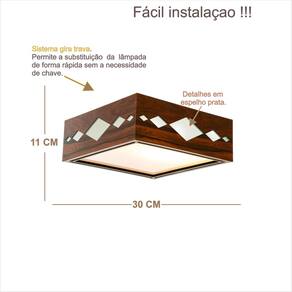 DIMENSÕES: Comprimento: 30cm Largura: 30 cm Altura: 11 cm Peso: 2,5 kg Qtde de lâmpadas: 2 led 6 a 15 W Alimentação: Bivolt 110/220