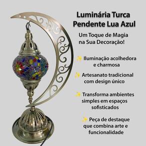 Luminária Decorativa Pendente Lua Colorida 40cm Codigo do produto: TB005669 Descrição: Luminária Turca o toque perfeito que faltava em seu lar Produzida na Turquia pelos mais talentosos artesãos, uma peça sofisticada com funcionalidade de iluminar a estética calorosa e a atraente das cúpulas em mosaico colorida. Os padrões com estrelas compostos artesanalmente nas peças criam lindos efeitos luminosos no ambiente, deixando o ambiente extremamente acolhedor. O Mosaico de vidro colorido com formas por todo o espaço promove Impacto visual na decoração de interiores, com esta arte da Turquia a iluminação se converte em uma verdadeira obra de arte. Vantagens: Este abajur decorativo se tornará o grande atrativo da decoração iluminando o ambiente de forma inusitada com as cores da Turquia. CARACTERISTICAS SURPREENDENTES: - Possuem um excelente acabamento e DESIGN SOFISTICADO; - Acrescenta um toque de DELICADEZA único á sua sala ou quarto; - Produto ARTESANAL em mosaico de vidros; - Transforma qualquer espaço pois possui AUTENTICIDADE e ESTILO ÚNICO; - Produzida com um material incrivelmente COLORIDO, NATURAL e DURADOURO. - Marcam ambientes internos ou até mesmo espaços abertos. Produtos são artesanais e podem apresentar cores, estampas, bordados, peso, tamanho e pinturas variados, o que não interfere em sua qualidade Como inserir a lâmpada: Para inserir a lâmpada em sua luminária turca, certifique que o botão de ligar/desligar esteja no modo desligado e a tomada de energia desligada. Após isso, basta retirar a cúpula de vidro pela parte de baixo cuidadosamente. Haverá uma presilha na parte interna da cúpula que garante o apoio junto à base da luminária. Basta retirar com cuidado e segurar a presilha . Insira a lâmpada soquete fino e feche a luminária, para isso, segure as presilhas internas em ambos os lados e coloque novamente presa na base da luminária. Se preferir, prenda um lado da presilha interna e com o apoio das mãos, empurre o outro lado da presilha para dentro da cúpula. característica: Altura: 40cm Largura: 25cm Comprimento: 16cm Botão Liga/Desliga Bivoltagem 110V ou 220V Material do Abajur : Vidro Turco processo: Feito à Mão Metal: Liga de Zinco Tonalizada Bronze Tensão/ Frequência: Bivolt 110V/220V Cor Predominante: azul Tamanho da Fiação: 1,08 Metro Tipo de Lâmpada: E14 A mesma de Geladeiras Não acompanha. Conteúdo: 1 x Luminária turca Mosaico Codigo do fornecedor: A30020/ 9370 Marca: Não Informado
