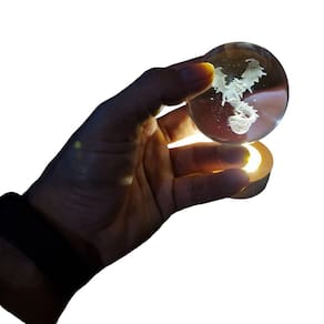 Características Técnicas: Material: Base de madeira e globo de vidro Fonte de Luz: LED com fio Alimentação: Entrada USB Dimensões: Altura: 8 cm Largura: 6 cm Profundidade: 6 cm Peso: 350 g Dimensões da Base: 5x5x2 cm Botão Liga/Desliga: Sim Temática: Dragão