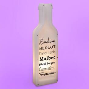 Produzida no Brasil, em polietileno com frente em acrílico, a luminária porta rolhas é bivolt (110/220v), possui fio de 1,5m e interruptor de mão e utiliza lâmpada LED até 5W ou fluorescente compacta (lâmpada NÃO inclusa).