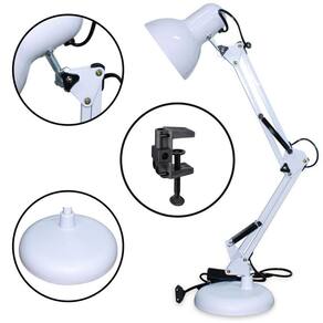 Contém: 01 - Luminária de Mesa Articulável Base Normal e Garra Branco