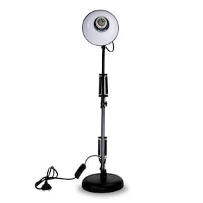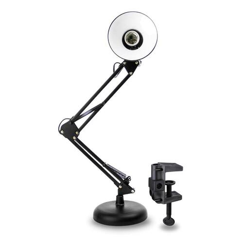 Caracteristícas: - Produto: Luminária de Mesa Articulável - Medidas: 65 cm em Pé e 28 cm Dobrada. - Cabo: 1,2 Metros. - Fonte: Tomada de Dois Pinos. - Bocal: E-27 Padrão (Lâmpada Comum) - Lâmpadas: Até 40Watts - Tensão: 110v-220v (Bivolt). - Acompanha Garra, possuindo 5,5 centímetros para encaixe, podendo ser ajustada para um tamanho menor.