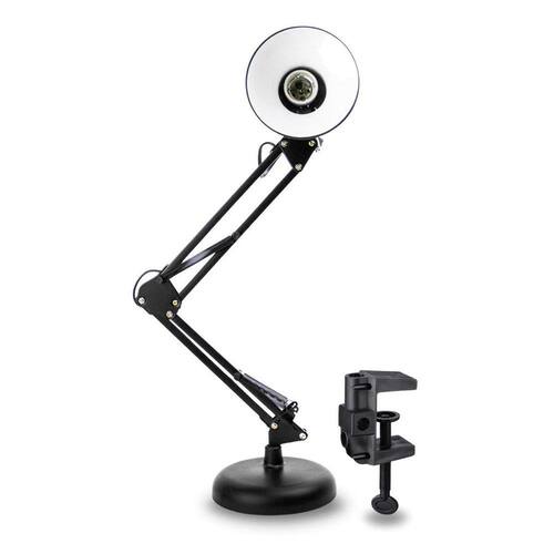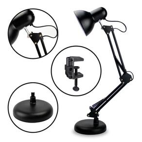 Caracteristícas: - Produto: Luminária de Mesa Articulável - Medidas: 65 cm em Pé e 28 cm Dobrada. - Cabo: 1,2 Metros. - Fonte: Tomada de Dois Pinos. - Bocal: E-27 Padrão Lâmpada Comum - Lâmpadas: Até 40Watts - Tensão: 110v-220v Bivolt . - Acompanha Garra, possuindo 5,5 centímetros para encaixe, podendo ser ajustada para um tamanho menor.