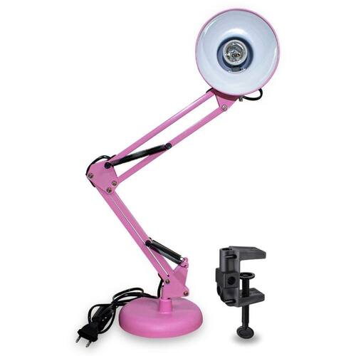 Contém: 01 - Luminária de Mesa Articulável Base Normal e Garra Rosa