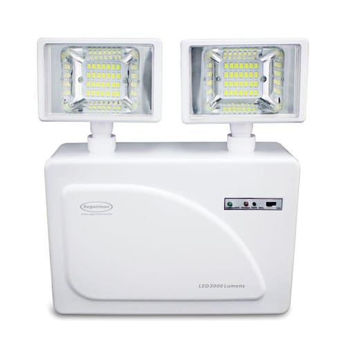 Constituída por 02 faróis, 28 leds de alta potência, lente com ângulo de 60 graus, Atende os requisitos exigidos pelas normas nacionais NBR 10898 . Este equipamento foi desenvolvido para iluminação de emergência aclaramento em galpões, hotéis, residências, escritórios, indústrias, supermercados, etc.A luminária 3000 lúmens, foi fabricada com a tecnologia LED, desenvolvida para iluminação deemergência aclaramento . Utilizada em galpões, prédios, industriais, estádios entre outros.Possui bateria de lítio gel selada , onde não ocorrem vazamentos, sendo ecologicamente correta.Nossa luminária de emergência tem uma durabilidade duas vezes maior em relação as lumináriascomuns encontradas no mercado nacional.Econômica, proporciona autonomia com maior durabilidade e ótima iluminação.Pode ser facilmente instalada, manuseada e transportada.Acende automaticamente na falta de energia elétrica.Informações Técnicas:Fluxo luminoso máximo 3000 lúmensPossui 56 LEDs SMD de alto brilho 28 LEDs em cada farolLED indicativo de funcionamento SimFaróis ajustáveis 360 grausBateria Gel selada 12V/ 4,5AhVida útil da bateria 200 ciclosAlimentação Bivolt automático 110/220VConsumo de energia 12WAutonomia 3 horasAtende os requisitos exigidos pelas normas nacionais NBR 10898Área de abrangência 600 metros quadradosTemperatura de cor do LED 6000k - 7000kGrau de proteção IP-20 somente uso interno Peso 2680gDimensões 261 comp. x 279 larg. x 94 alt. cmFabricado Plástico ABS branco não propaga chamas Buchas e parafusos Sim- Botão de Verificação: SimGarantia 2 anosInstruções de Uso:1 - Coloque a chave seletora na posição desligada,2 - Coloque o plug na tomada e carregue a bateria por no mínimo 48 horas,3 - Após o carregamento total, coloque a chave seletora na posição ligada.Recomendamos que a cada 3 meses seja descarregada 100% a bateria para uma durabilidade e vidaútil maior. Siga novamente as instruções citadas anteriormente.Recomendações de garantia: O produto não pode modificado fisicamente.Ex.: Corte de plug , abertura de produto, troca de peças entre outros.