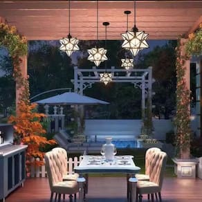 A luminária pendente estrela Gimpo, modelo KJDD-E-005, é uma peça incrível de iluminação. Com um toque moderno, geométrico, proporciona um acabamento visual fantástico Desperta admiração e se torna o centro das atenções. É ideal para iluminar diversos ambientes, tais como: quartos, cabeceiras, salas, ilhas de cozinha, mesas de jantar, halls, corredores, varandas, banheiros, lavabos, penteadeiras, bares, cafés, restaurantes, consultórios, clínicas, salões, etc. Pode ser utilizado individualmente ou em composições com outros pendentes.