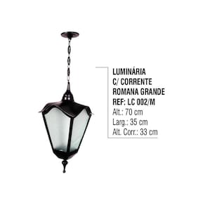01 Luminária Externa Interna Romana Grande C/ Corrente Alumínio