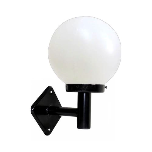 01 Luminária Globo Braço Reto de Parede Alumínio Preto 20x15cm.