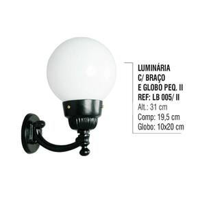 01 Luminária Globo Pequena 2 Com Braço Externa/Interna Alumínio 31cm