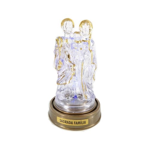 Luminária Imagem Sagrada Família Menino Jesus, Maria E José com Luzes de LED Azul.