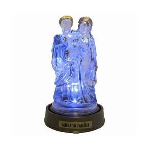 Luminária Imagem Sagrada Família Menino Jesus, Maria E José com Luzes de LED Azul.