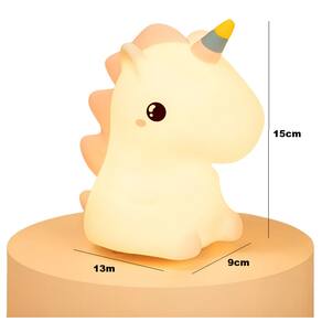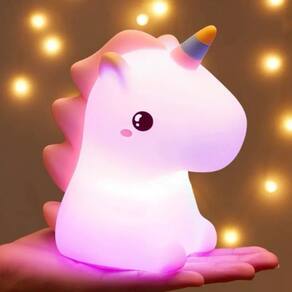 Características: Design fofo e divertido em formato de unicórnio Material: Silicone + ABS Bateria: 1200mAh Tempo de carregamento: 2-3h Iluminação em 7 cores diferentes Luz suave, ideal como abajur ou luz noturna Tamanho compacto, perfeito para mesas de cabeceira, escrivaninhas e decoração infantil Medidas aproximadas: 13cm*9cm*15cm