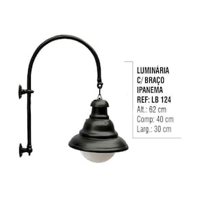 01 Luminária Ipanema Com Braço Externo/Interno em Alumínio 62cm