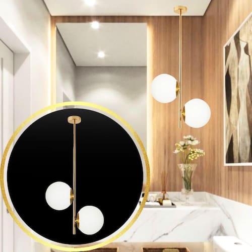 Luminária Jabuticaba 60cm Dourada 2 Globos Vidro Pendente Lustre Teto Gimpo KJDD-E-071-GOLD