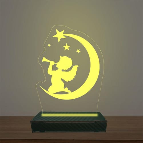 Luminária Led 3d Anjo Na Lua Abajur Luxo - Cor: Amarelo