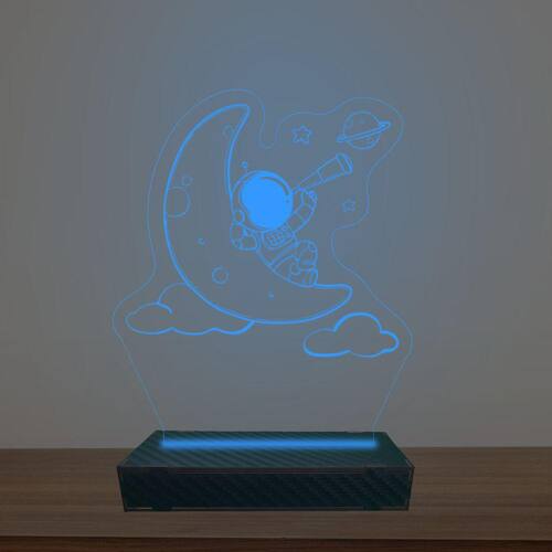 Luminária Led 3d Astronauta Na Lua Abajur Luxo - Cor: Azul