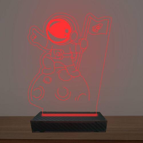 Luminária Led 3d Astronauta na Lua Abajur Luxo - Cor: Vermelho