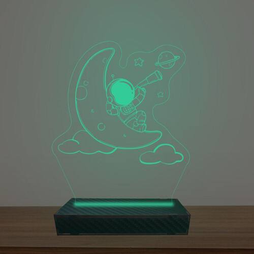 Luminária Led 3d Astronauta Na Lua Abajur Luxo - Cor: Verde