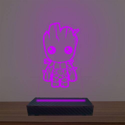 Luminária Led 3d Baby Groot Abajur Luxo - Cor: Roxo