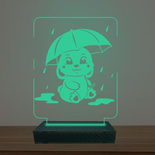 Luminária Led 3d Coelhinho na Chuva Abajur Luxo - Cor: Verde